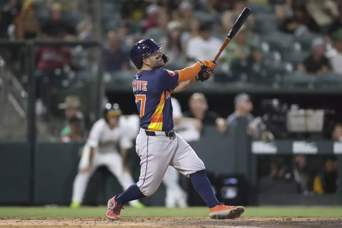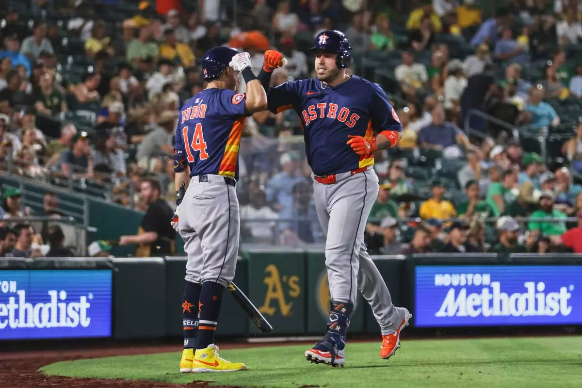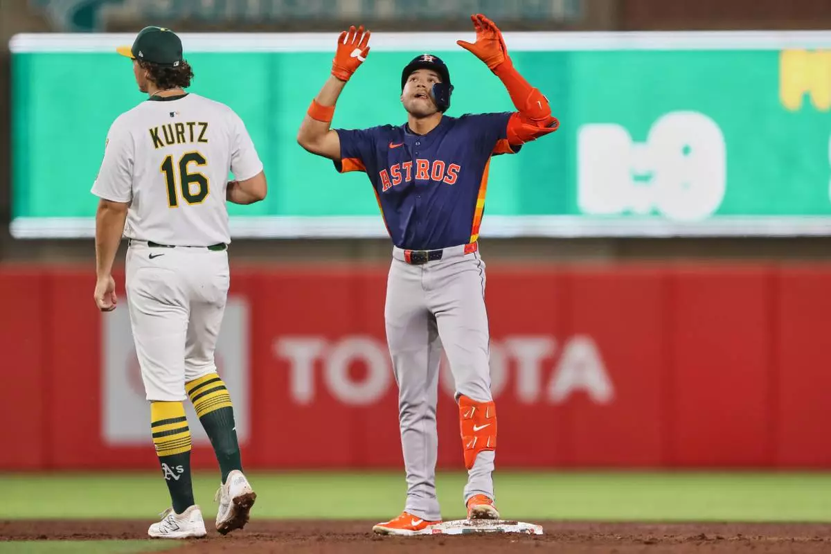 WEST SACRAMENTO, Calif. (AP) — Jose Altuve and Victor Caratini hit three-run home runs in a seven-run sixth inning and the Houston Astros had a season-high 20 hits in an 11-4 victory over the Athletics on Wednesday night.