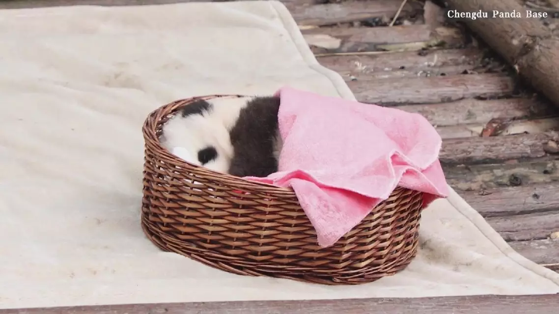 Footage captures heart-melting moment of newborn panda peacefully sleeping in basket