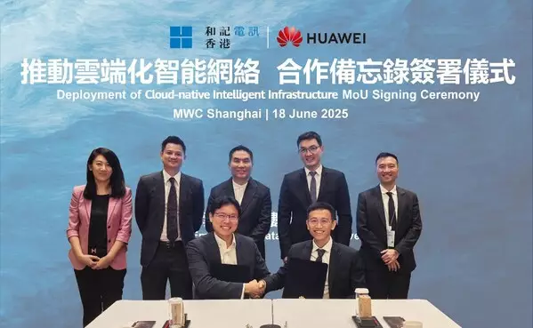SHANGHAI, June 19, 2025 /PRNewswire/ -- On June 18, 2025, Hutchison Telecommunications (Hong Kong) Limited (HTHK) and Huawei International Company Limited (Huawei Hong Kong) signed a strategic Memorandum of Understanding (MoU) on the deployment of cloud-native intelligent infrastructure at the Mobile World Congress 2025 in Shanghai. The MOU focuses on enhancing network operations and management through artificial intelligence (AI) and big data via cloud transformation, boosting overall network efficiency and provide customers with even smoother and more reliable telecoms services.