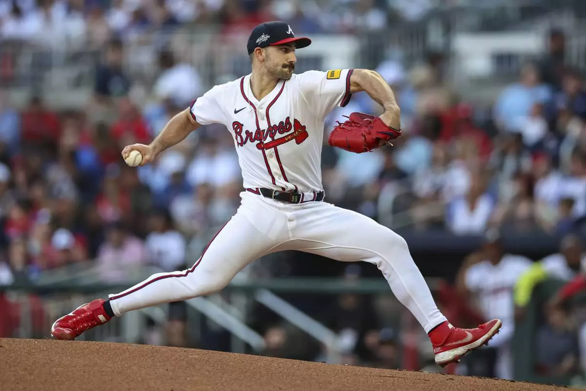 Atlanta Braves pitcher Spencer Strider delivers in the second inning of a baseball game against the New York Mets, Thursday, June 19, 2025, in Atlanta. (AP Photo/Colin Hubbard)