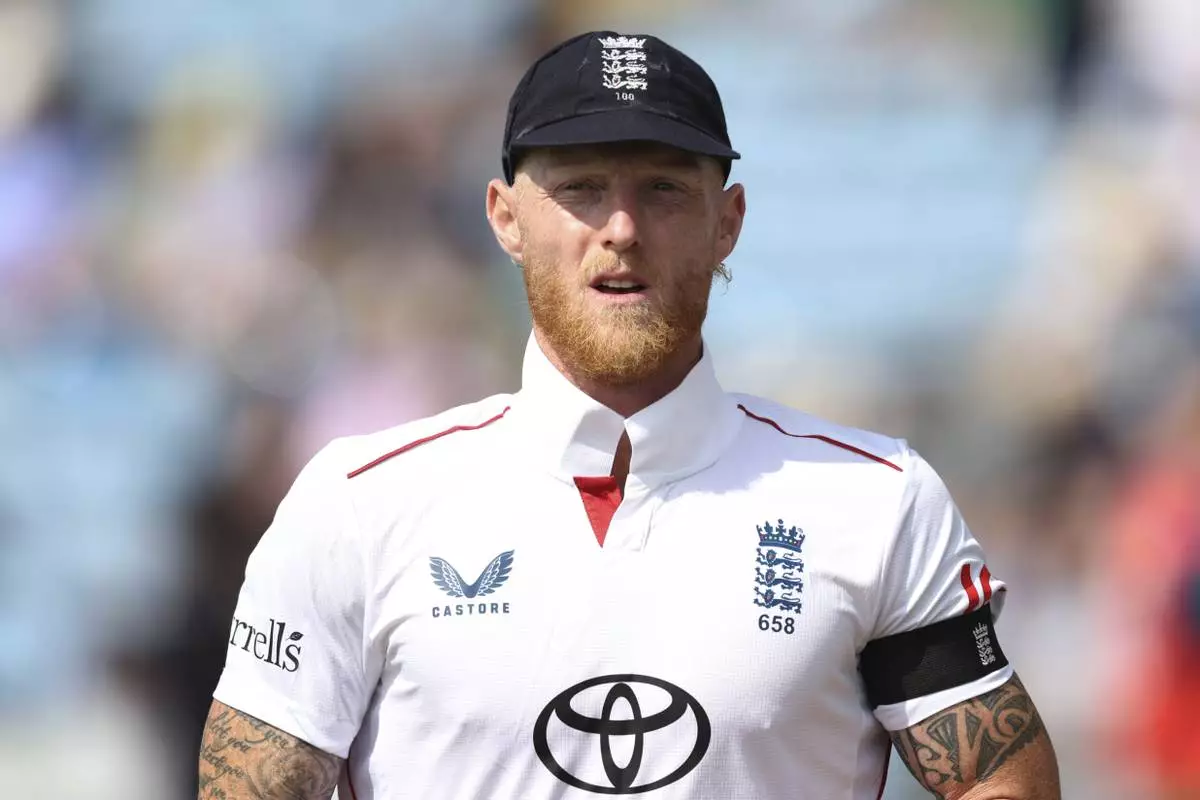 England captain Ben Stokes wears a black armband to pay homage to the victims of the Air Indian plane crash, before the start of play on day one of the first cricket test match between England and India at Headingley in Leeds, England, Friday, June 20, 2025, (AP Photo/Scott Heppell)