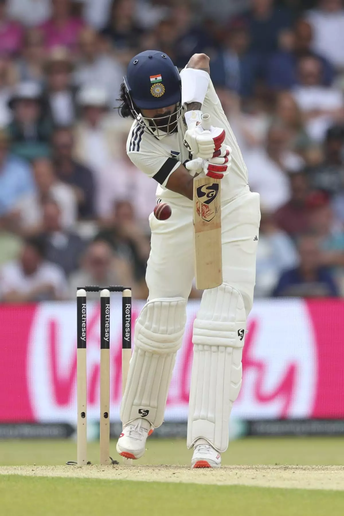He and Rahul shared 16 boundaries, all on the off side, until seven minutes from lunch when Rahul on 42 edged Carse to first slip, where Joe Root took his 209th catch, one shy of Rahul Dravid's test record for a non-wicketkeeper.