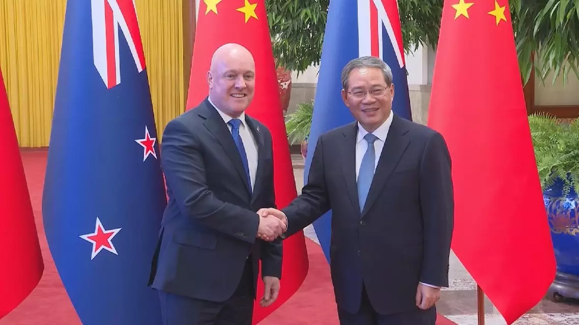 The two sides jointly issued the Joint Outcome Statement of the China-New Zealand Leaders' Meeting. Prior to the talks, Li held a welcome ceremony for Luxon in the Great Hall of the People. The military band played national anthems of the two countries. Luxon, accompanied by Li, reviewed the Guard of Honor of the Chinese People's Liberation Army.