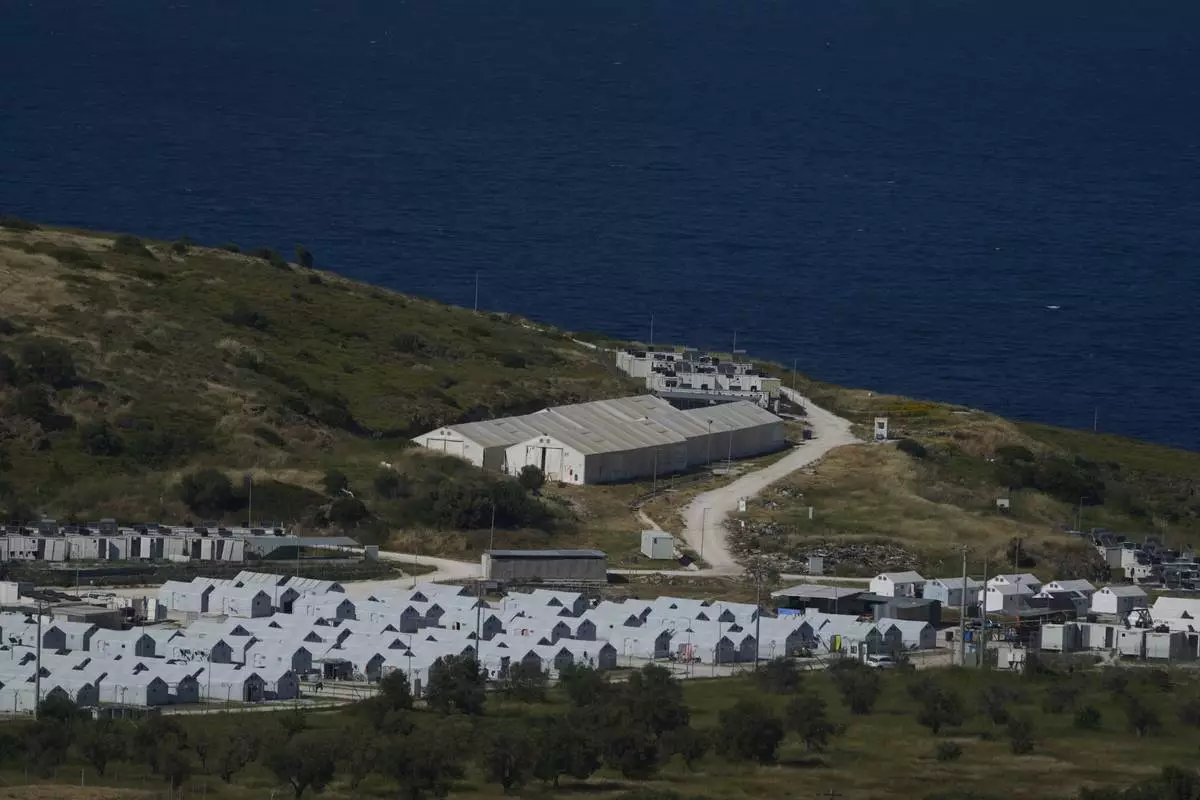 Part of the Kara Tepe refugee and migrant camp on the island of Lesbos, Greece, is seen on May 13, 2025. (AP Photo/Petros Giannakouris)