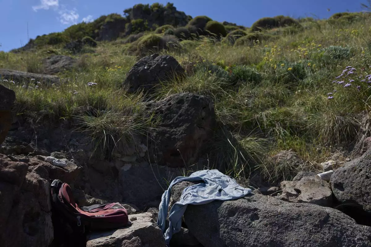 Abandoned clothing used by refugees and migrants while crossing from Turkey to Greece are seen on cape Korakas, Wednesday, May 14, 2025. (AP Photo/Petros Giannakouris)