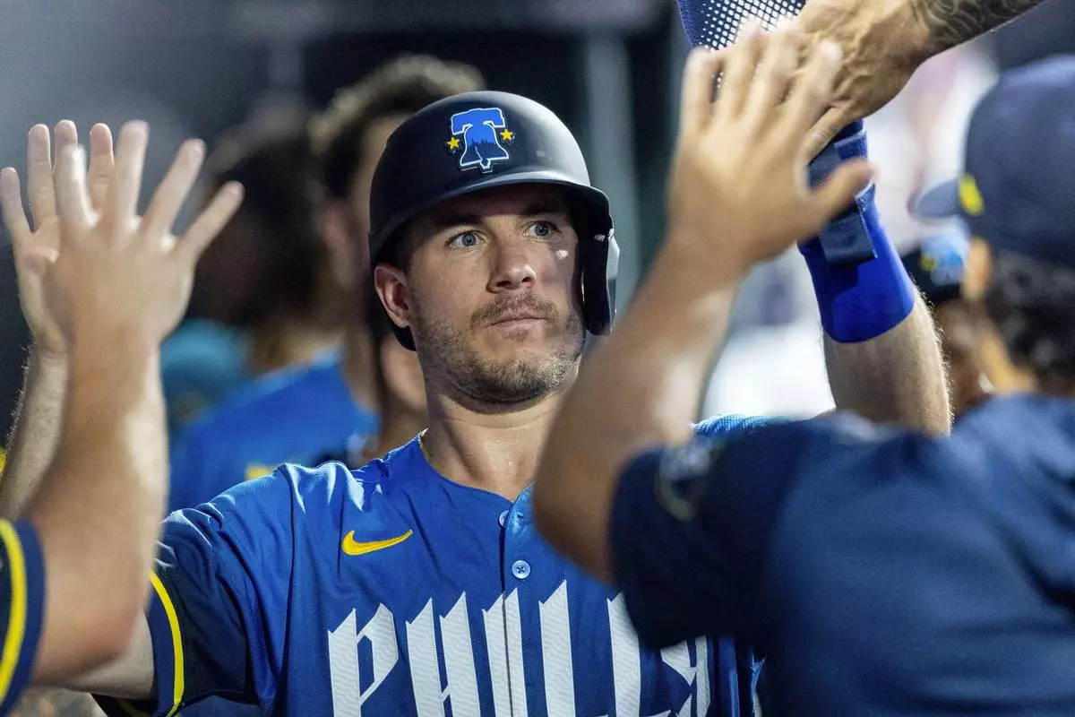 J.T. Realmuto followed Castellanos closely home on Stott’s hit, sliding safely to the plate at nearly the same time.