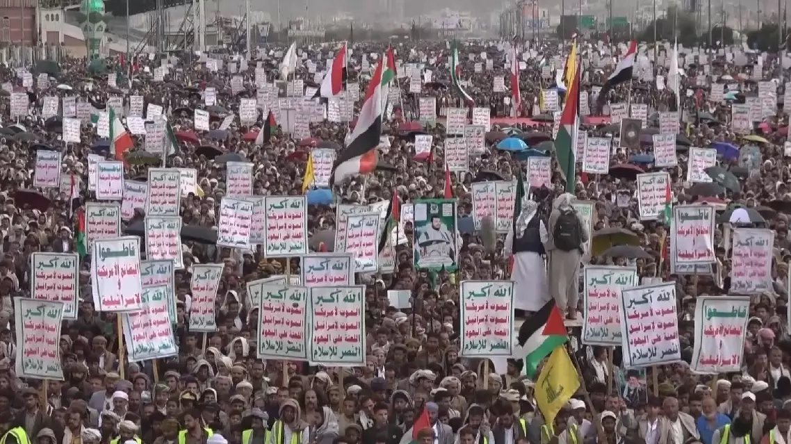 Yemen's Houthis on Friday organized massive rallies in Sanaa and over 400 other locations to show solidarity with Iran and Palestinians in the Gaza Strip, denouncing the recent Israeli strikes on Iran.