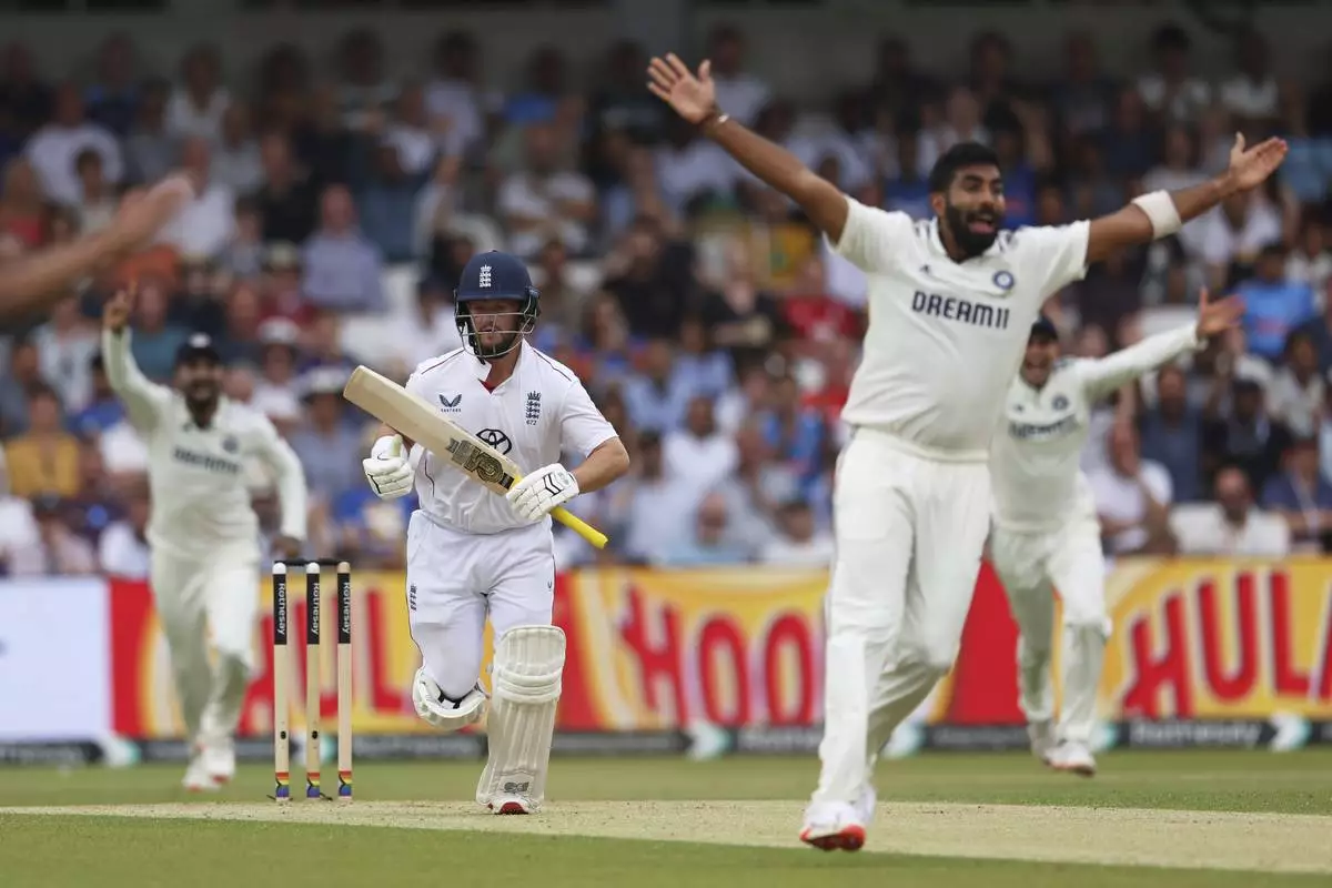 Bumrah would have had a fourth wicket in the day's last over — Harry Brook on 0 — but he overstepped for the third time in the over. The world's best fast bowler was also the victim of two dropped catches in the field.