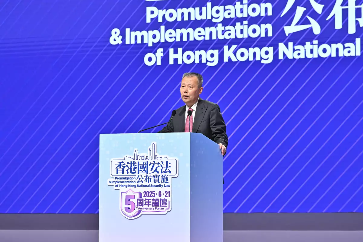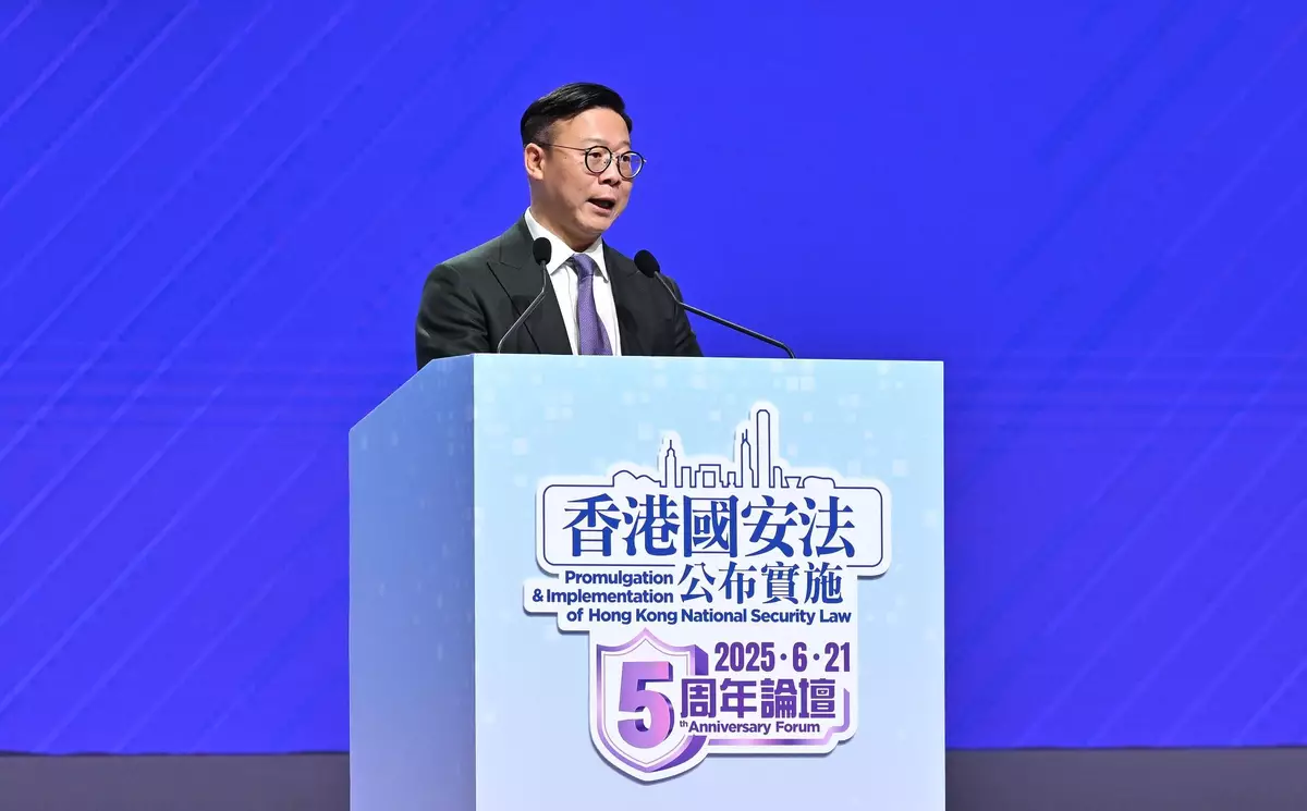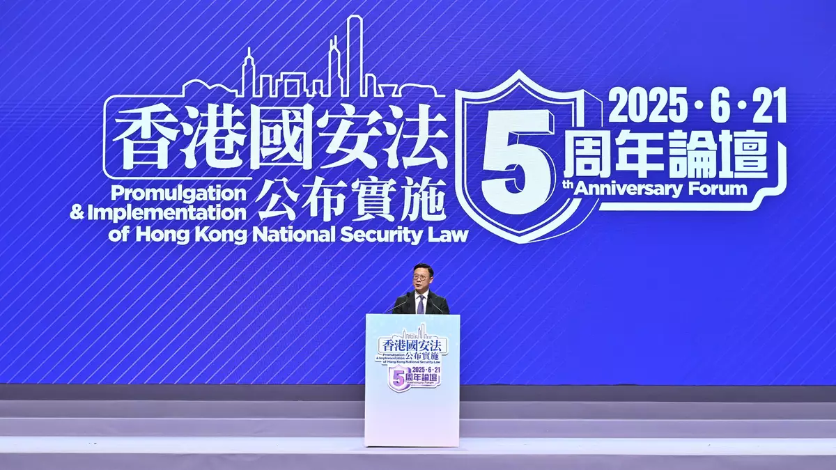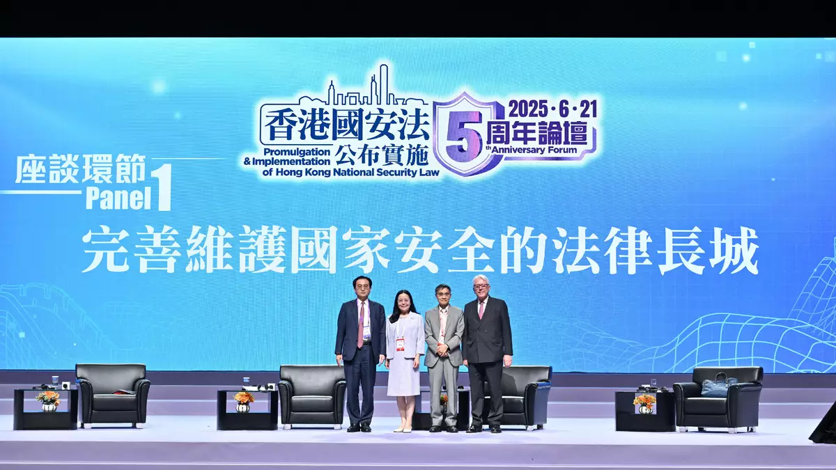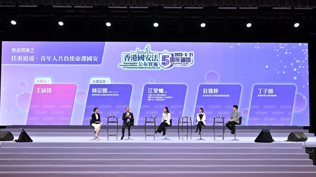 The Hong Kong Special Administrative Region (HKSAR) Government held the 5th Anniversary ofPromulgation & Implementation ofHong Kong National Security Law Forum today (June 21), inviting renowned legal experts and academics to review the legislative intent and background of the Hong Kong National Security Law (HKNSL), and discuss the fruitful achievements since the implementation of the HKNSL,in the afternoon session of the Forum. The Secretary for Justice,MrPaul Lam, SC,alsoengagedwith young leaders from various sectors to convey the message that national security is closely relatedtocitizens,enablingmembers of the public to understand the importance of uniting everyone's strength in building agreat wallforsafeguarding national security.