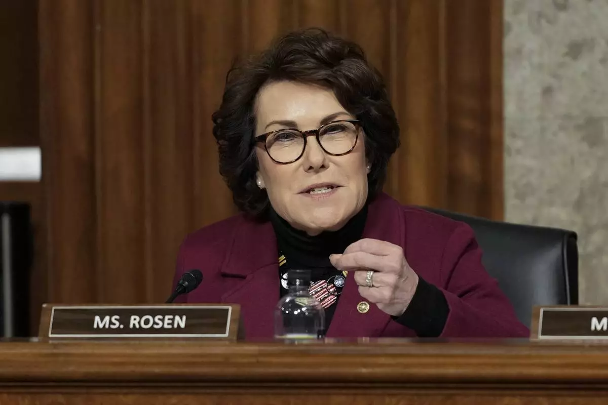 FILE - Sen. Jacky Rosen, D-Nev., speaks during a Senate Armed Services Committee confirmation hearing at the Capitol in Washington, Jan. 14, 2025. (AP Photo/Ben Curtis, File)