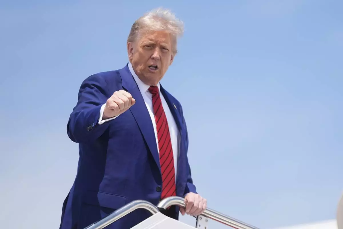 President Donald Trump gestures as he boards Air Force One at Joint Base Andrews, Md., Friday, June 20, 2025. (AP Photo/Manuel Balce Ceneta)