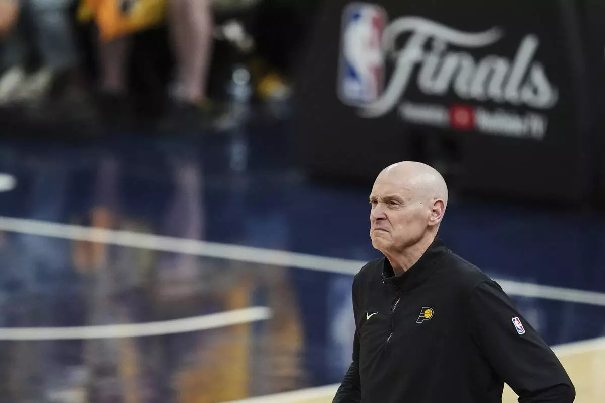 Indiana Pacers head coach Rick Carlisle watches during the second half of Game 6 of the NBA Finals basketball series against the Oklahoma City Thunder, Thursday, June 19, 2025, in Indianapolis. (AP Photo/Michael Conroy)