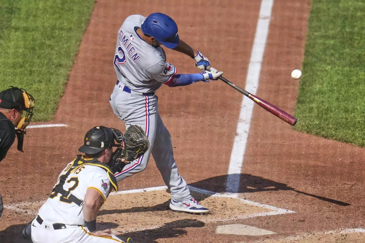 PITTSBURGH (AP) — Corey Seager singled in the tiebreaking run in the sixth inning and rookie Kumar Rocker won his second straight start and the Texas Rangers beat the Pittsburgh Pirates 3-2 on Saturday.