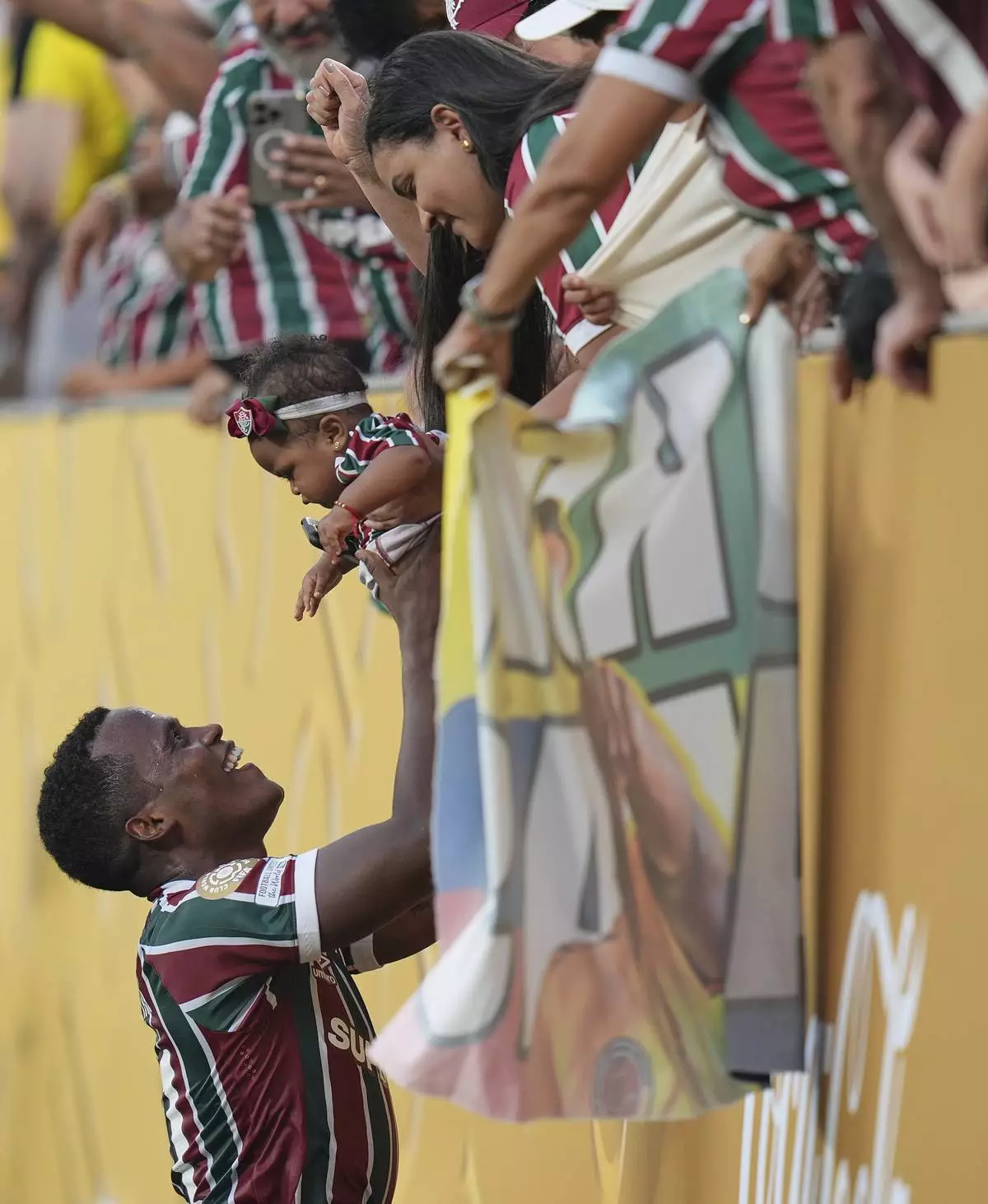 Fluminense's Jhon Arias greets supporters after beating Ulsan HD in a Club World Cup group F soccer match, Saturday, June 21, 2025, in East Rutherford, N.J. (AP Photo/Seth Wenig)