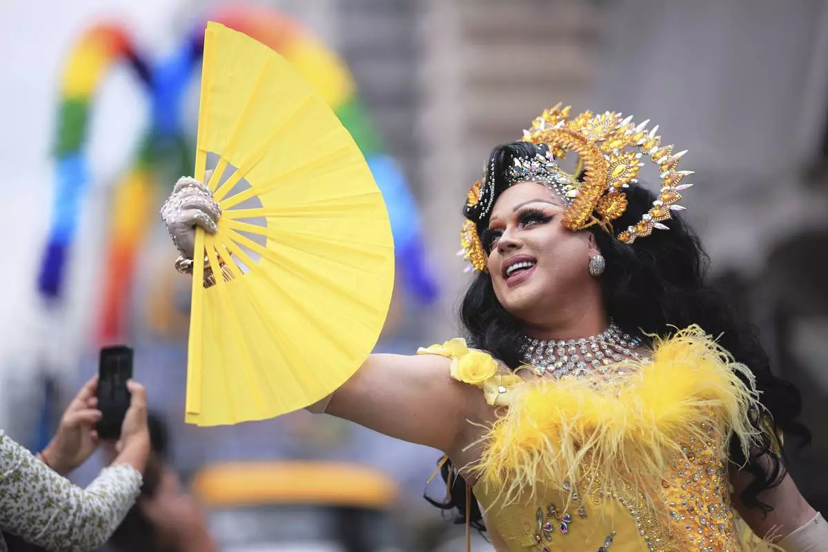 A drag queen known as Raul poses for a photo during the annual Gay Pride parade marking LGBTQ+ Pride Month, in Santiago, Chile, Saturday, June 21, 2025. (AP Photo/Esteban Felix)