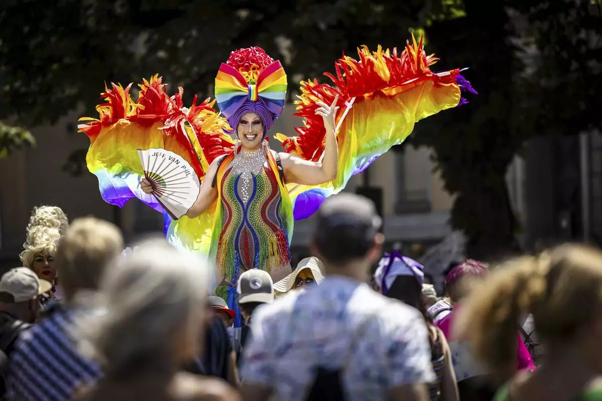 People take part in the Zurich Pride parade in Zurich, Switzerland, on Saturday, June 21, 2025. (Michael Buholzer/Keystone via AP)