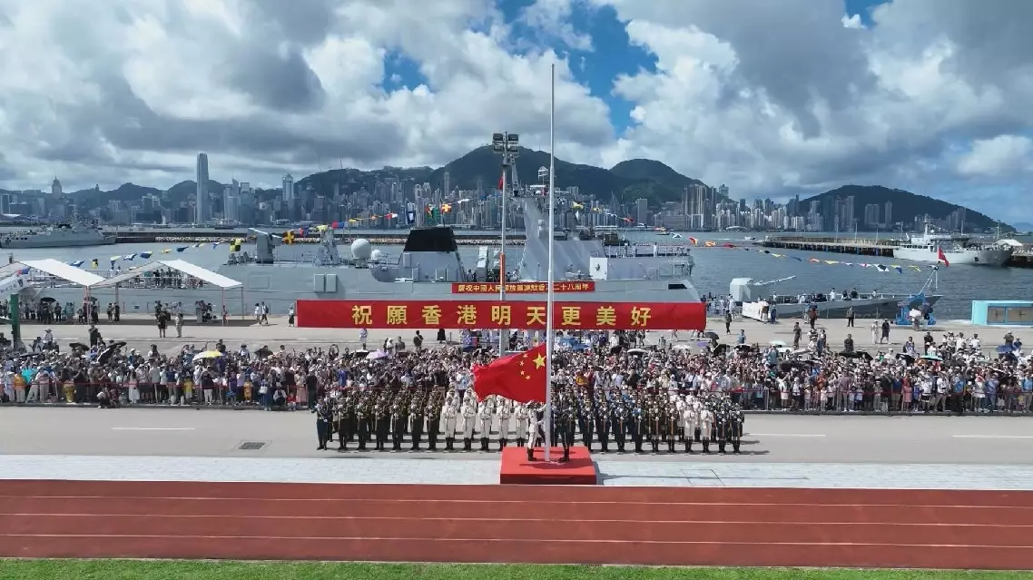 Representatives of the army, navy and air force of the Hong Kong garrison, together with a large number of local residents, stood solemnly and saluted the national flag.