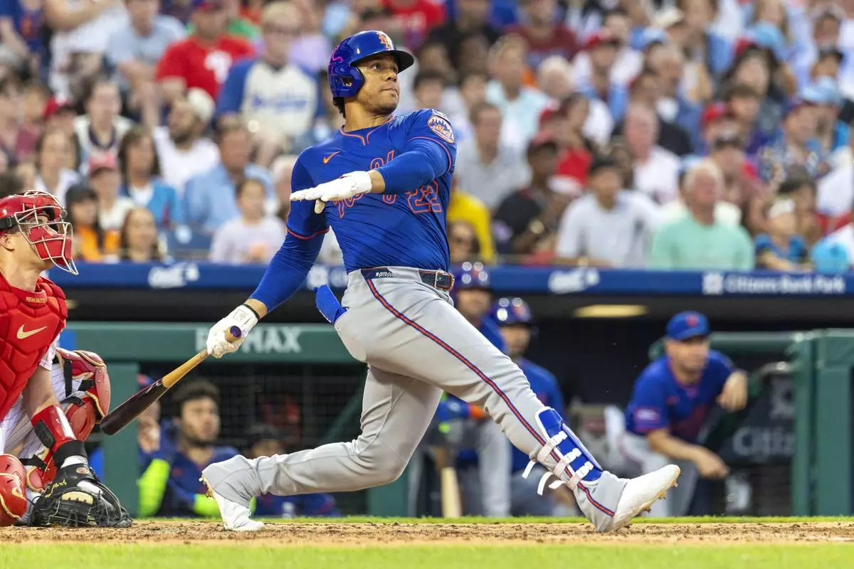 Francisco Lindor, Jared Young and Francisco Alvarez also went deep for the Mets, who tied Philadelphia atop the NL East at 46-31. Lindor drove in three runs, and Soto finished with four hits and four RBIs.