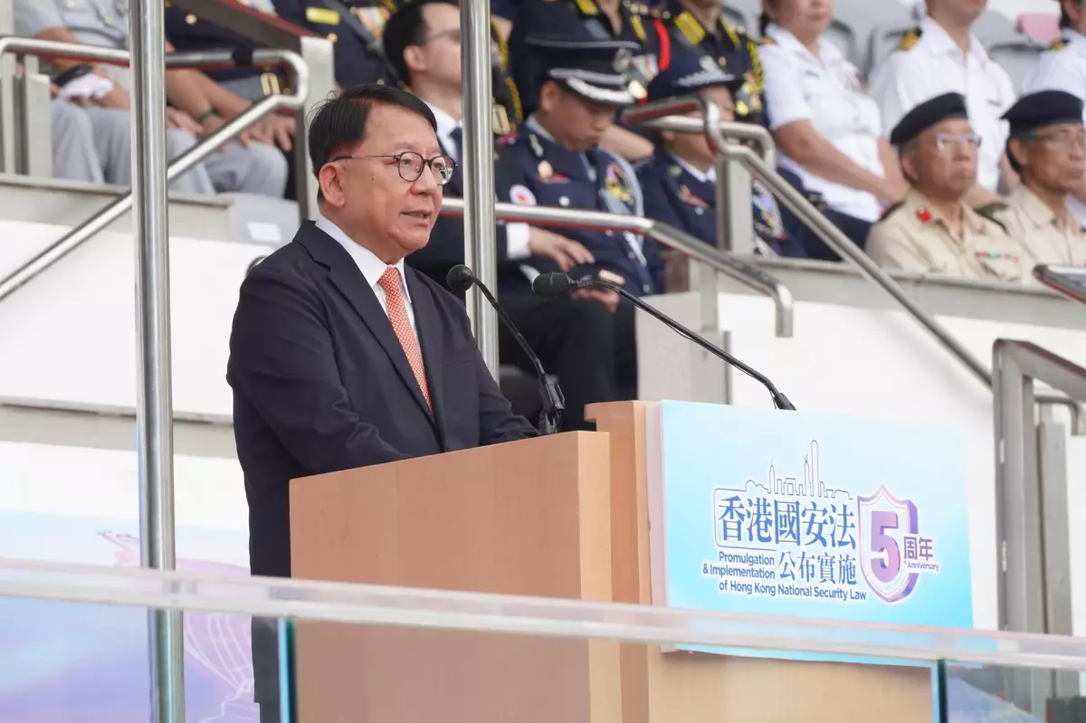 Addressing the ceremony, Mr Chan said that the promulgation and implementation of the HKNSL have laid a solid legal foundation for safeguarding national sovereignty, security, and development interests. The HKNSL is a solid shield protecting Hong Kong, safeguarding the steadfast and successful implementation of "one country, two systems", and protecting the fundamental well-being of Hong Kong people. Mr Chan praised the disciplined services for their unwavering commitment to implementing the holistic approach to national security and dedication to ensuring national security and social stability. He also encouraged young people to be the future pillars of the country and expressed hope that the whole community would continue to work together to protect national security.