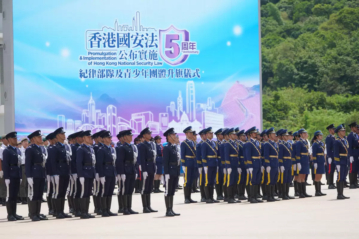 Security Bureau holds Flag Raising Ceremony by Disciplined Services and Youth Groups for Commemorating 5th Anniversary of Promulgation and Implementation of Hong Kong National Security Law (with photos/video) Source: HKSAR Government Press Releases