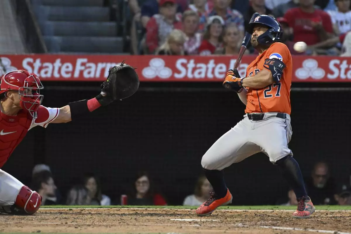 Jose Altuve walked and scored on a two-out single by Christian Walker in the fourth for the Astros, but the Angels answered in their half when Zach Neto doubled with two outs and scored on Schanuel's single for a 7-1 lead.