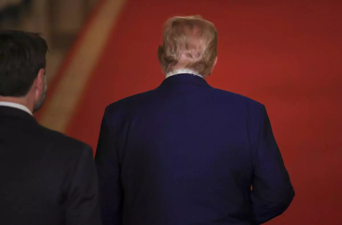 President Donald Trump departs after speaking from the East Room of the White House in Washington, Saturday, June 21, 2025, after the U.S. military struck three Iranian nuclear and military sites, directly joining Israel's effort to decapitate the country's nuclear program. (Carlos Barria/Pool via AP)