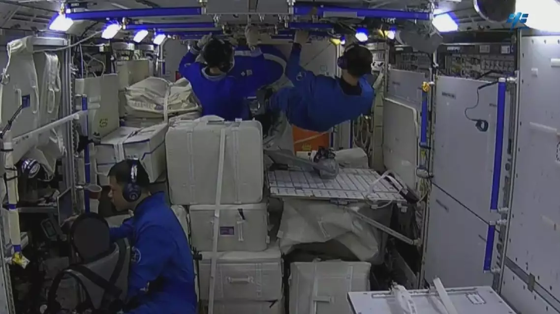 Meanwhile, the three astronauts counted, confirmed, sorted and transferred the supplies, and cleaned the station regularly.