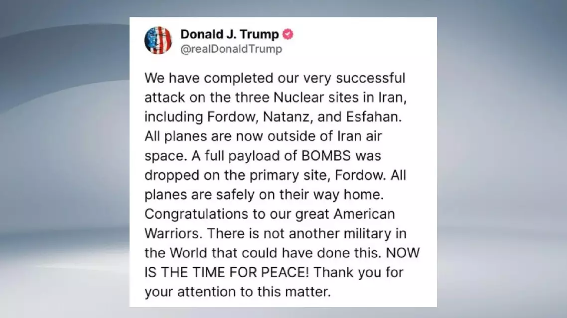 U.S. President Donald Trump said earlier on Saturday that the United States has completed attacks on three nuclear sites in Iran, including "Fordow, Natanz and Esfahan."