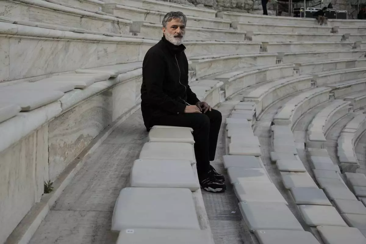 Greek National Opera's Artistic Director, Giorgos Koumendakis poses ahead of the dress rehearsal of Giacomo Puccini's "Turandot" by the Greek National Opera during the 70th Athens Epidaurus Festival in Athens, Greece, Friday, May 30, 2025. (AP Photo/Thanassis Stavrakis)