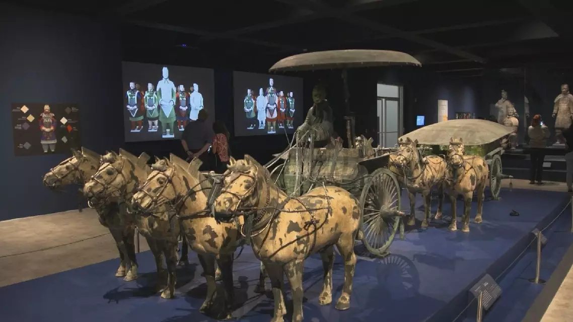Towering Terracotta Warriors and ornate chariots are showcasing the grandeur of the ancient Chinese civilization, featuring a series of relics on display for the first time in North America.