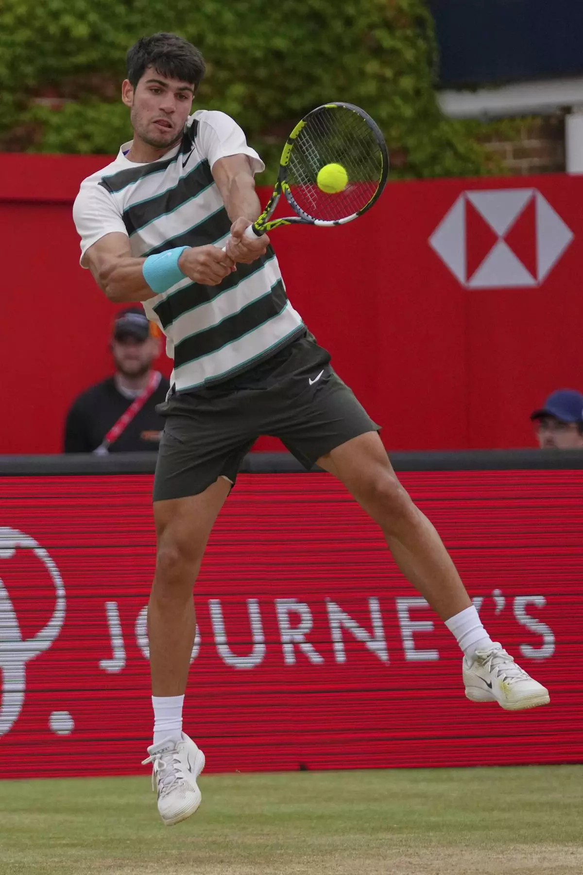 LONDON (AP) — Carlos Alcaraz showed he will be the man to beat at Wimbledon again after defeating Jiri Lehecka in the final at Queen's Club on Sunday.
