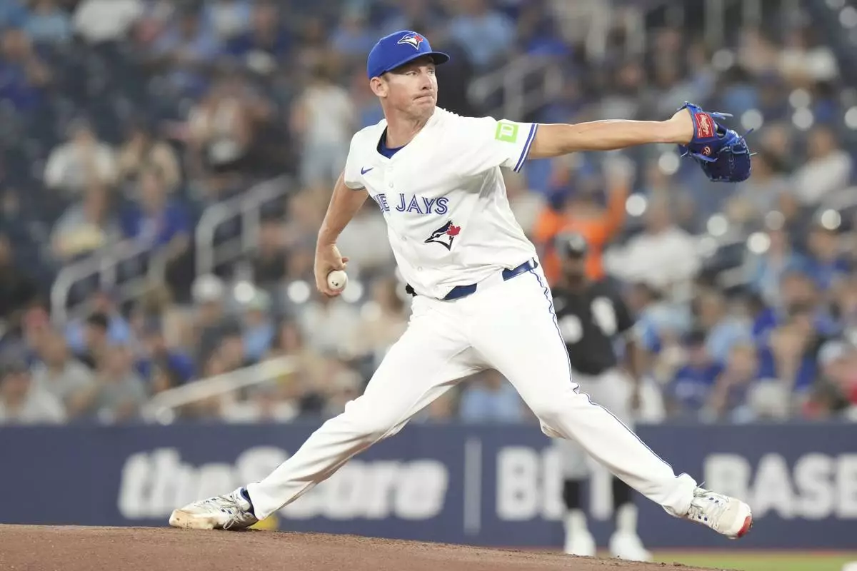 Toronto Blue Jays pitcher Chris Bassitt (40) works against Chicago White Sox during the first inning of a baseball game in Toronto, Sunday June 22, 2025. (Chris Young/The Canadian Press via AP)