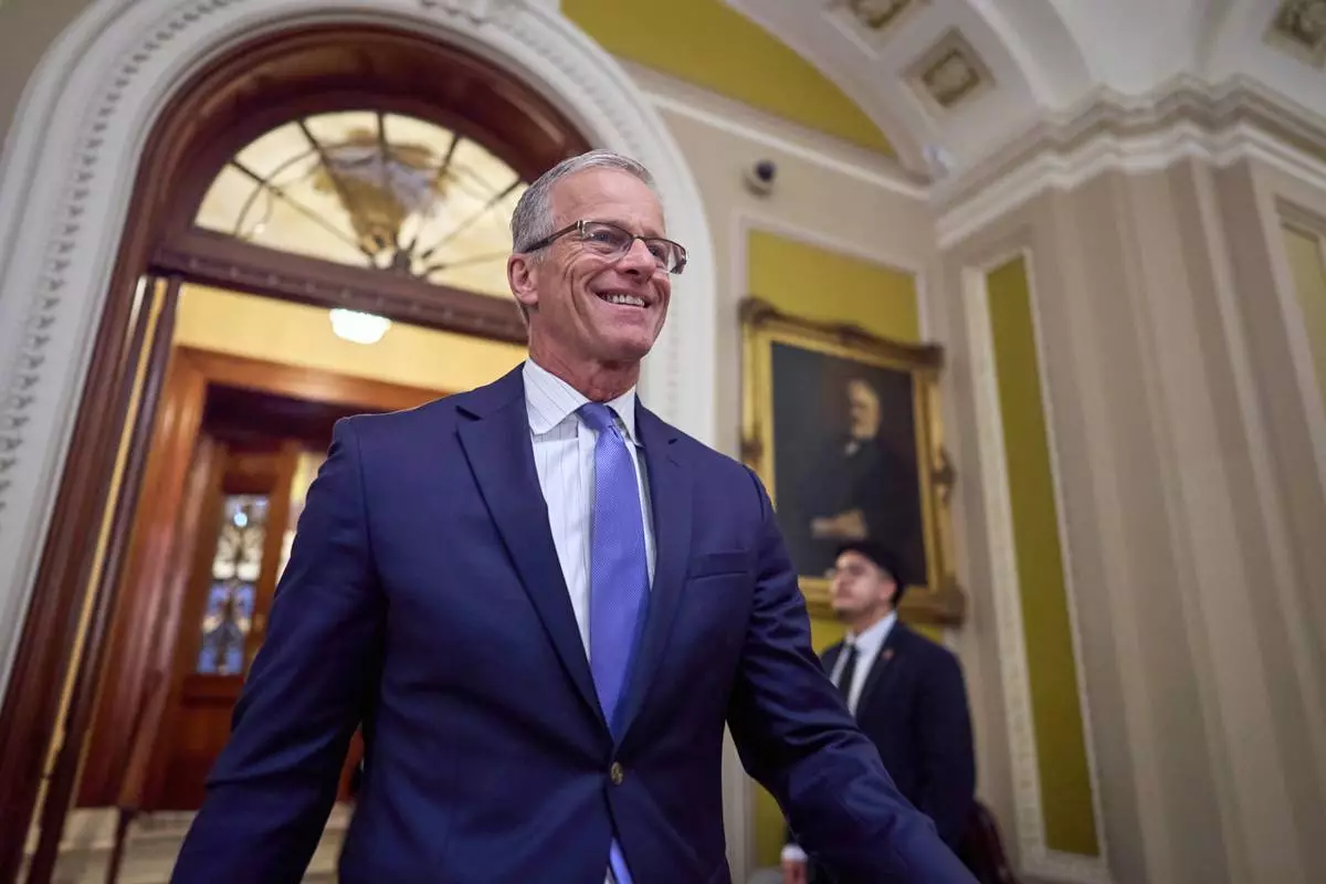 Senate Majority Leader John Thune, R-S.D., leaves the chamber Wednesday afternoon with plans to take up voting on the GOP's sweeping mega bill by next week despite lack of support from key fiscal hawks, at the Capitol in Washington, Wednesday, June 18, 2025. (AP Photo/J. Scott Applewhite)