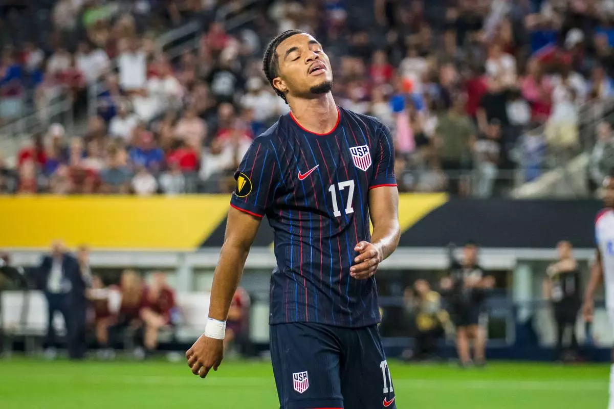 United States forward Malik Tillman (17) reacts after missing a chance at goal during a CONCACAF Gold Cup soccer match against Haiti, Sunday, June 22, 2025, in Arlington, Texas. (AP Photo/Jessica Tobias)