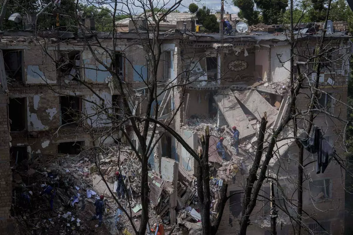 The most severe damage was in Shevchenkivskyi district, where a section of a five-story apartment building collapsed.
