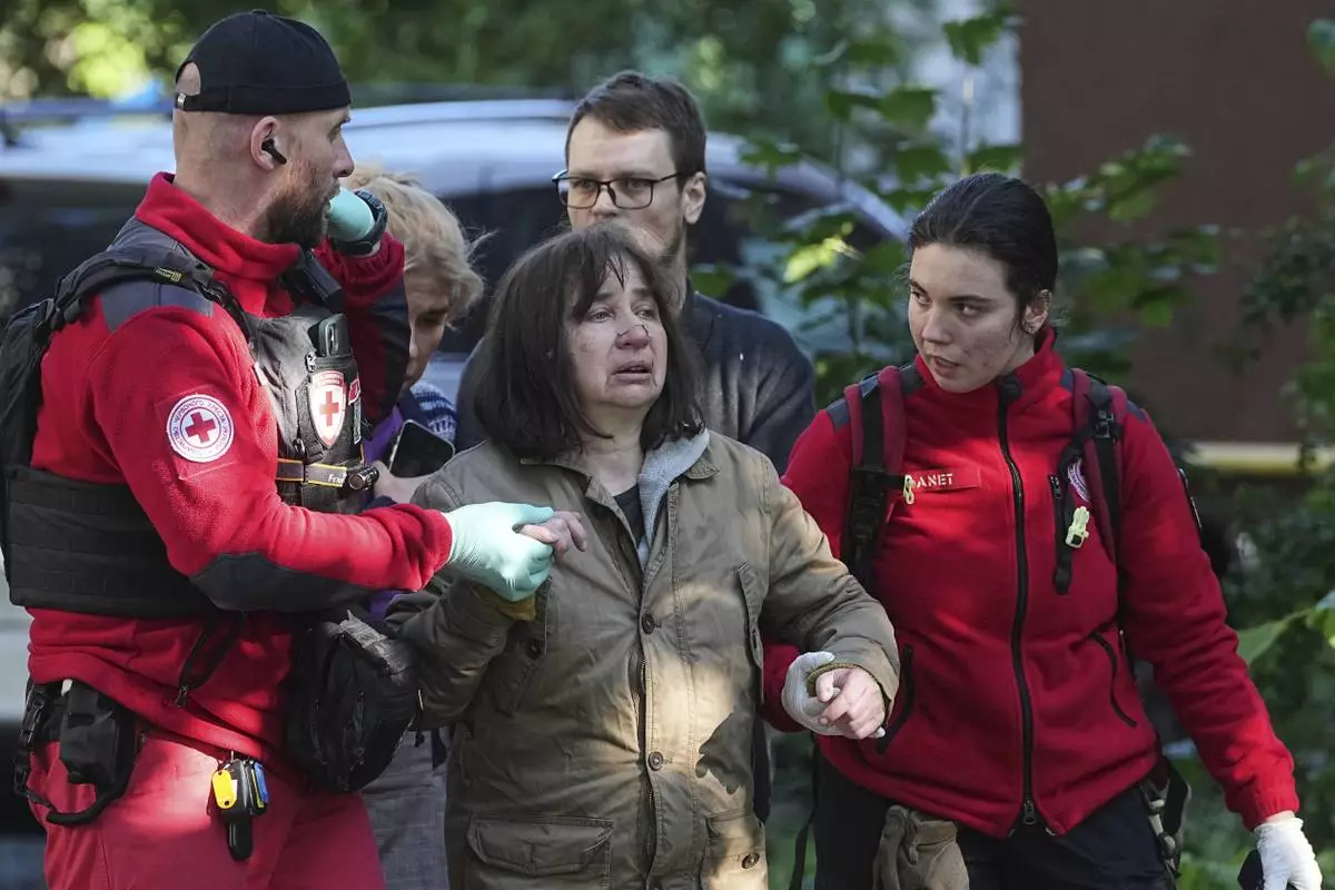 The Russian attack also damaged the entrance to the Sviatoshyn subway station in Kyiv, slightly injuring two people, said Timur Tkachenko, the head of Kyiv's military administration. He said more than 30 people were injured across the city.