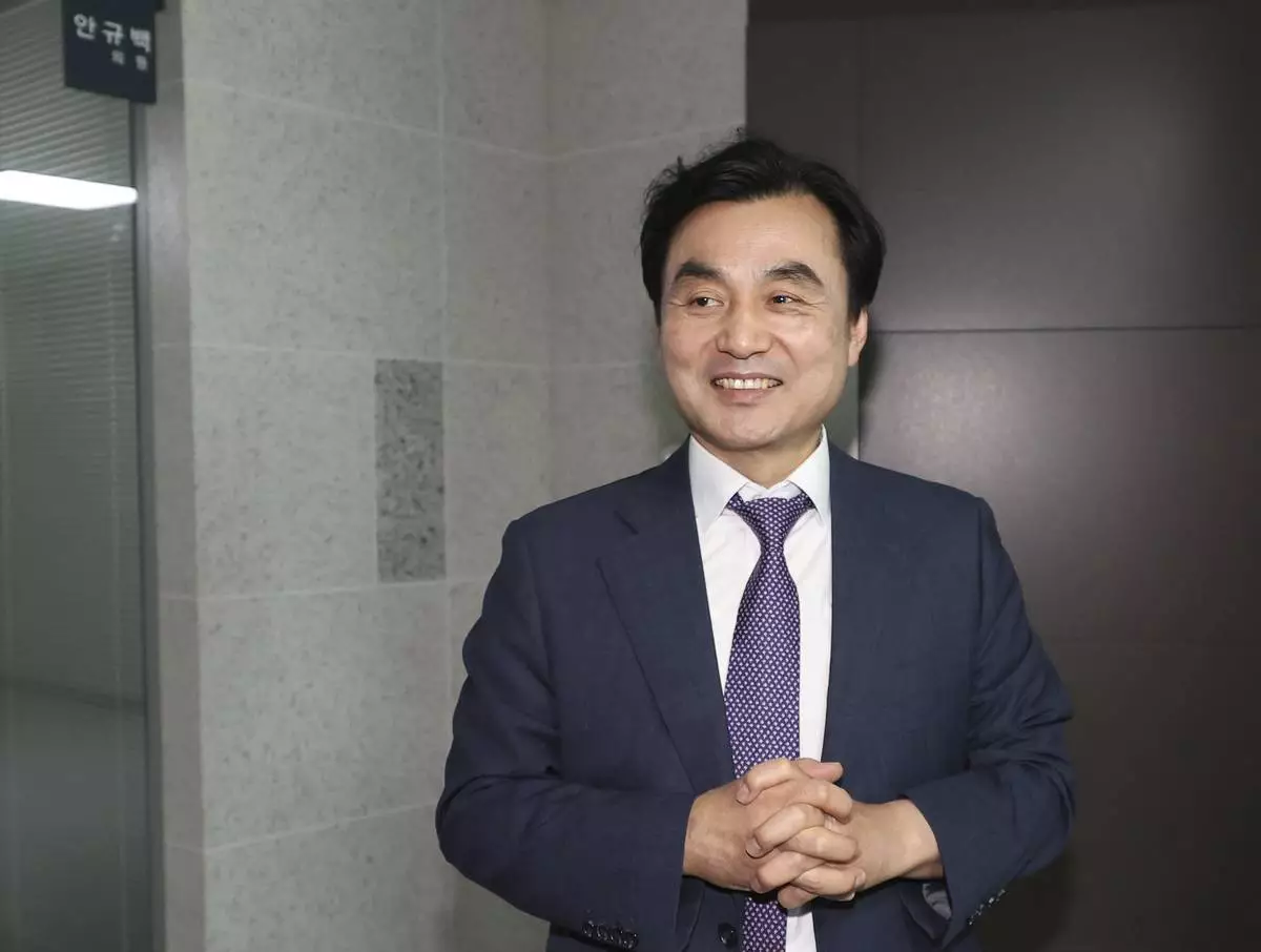 Ahn Gyu-back, South Korean defense minister nominee, leaves his office at the National Assembly in Seoul, South Korea, Monday, June 23, 2025. (Park Dong-joo/Yonhap via AP)