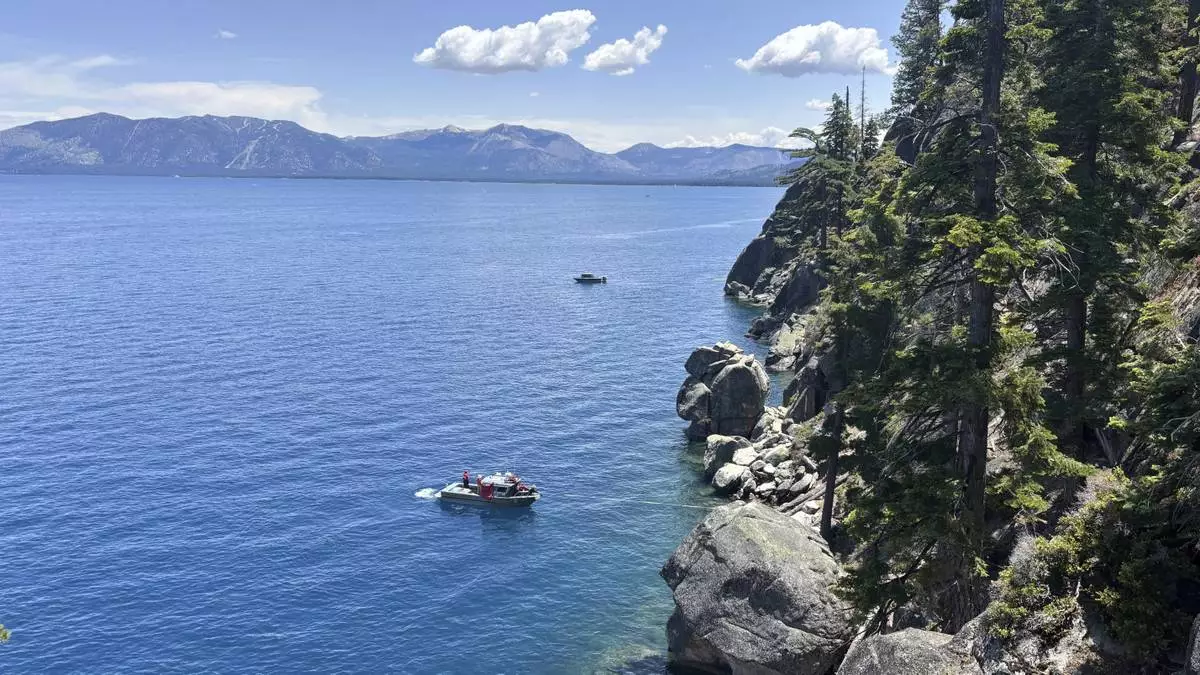 Authorities conduct searches along the shore at D.L. Bliss State Park after a weekend incident in which a boat capsized, killing several people, on Monday, June 23, 2025, in South Lake Tahoe, Calif. (AP Photo/Brooke Hess-Homeier)