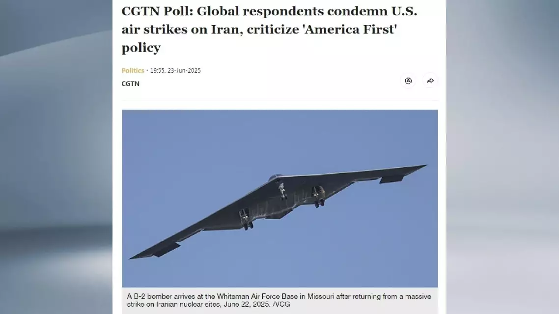 A global poll conducted by CGTN shows that respondents overwhelmingly condemn the U.S. air strikes on Iran's nuclear facilities and criticize the "America First" foreign policy for bringing endless disaster to the Middle East.