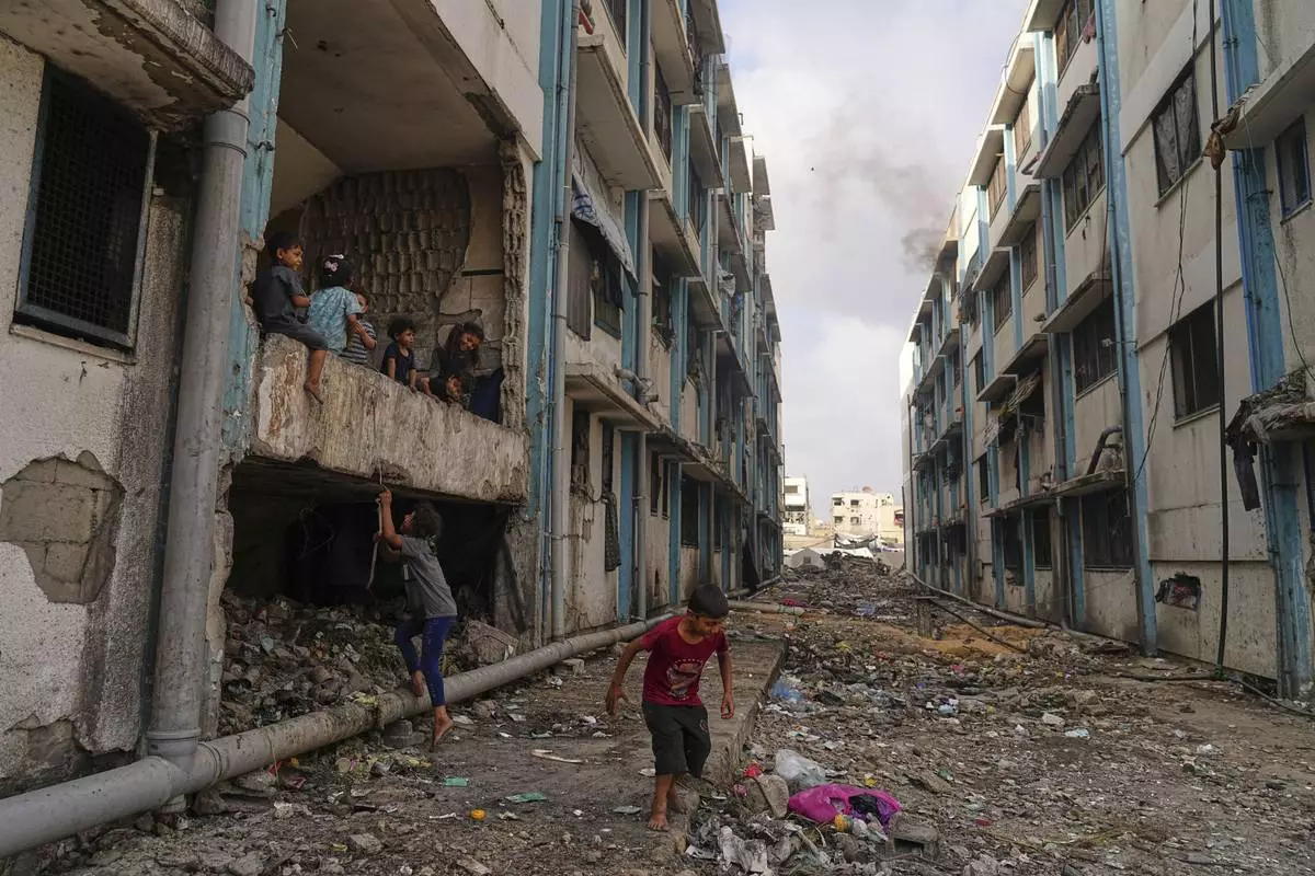 Displaced Palestinians live in a school run by UNRWA, the U.N. agency, in Gaza City, Monday, June 23, 2025. (AP Photo/Jehad Alshrafi)