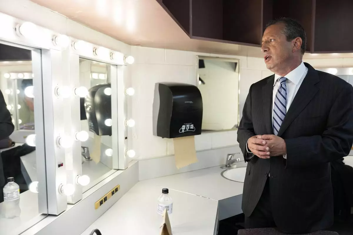 FILE - City Comptroller Brad Lander preps before the New York City Democratic Mayoral Primary Debate at the John Jay College of Criminal Justice in the Gerald W. Lynch Theater, in New York City, June 12, 2025. (Vincent Alban/The New York Times via AP File)
