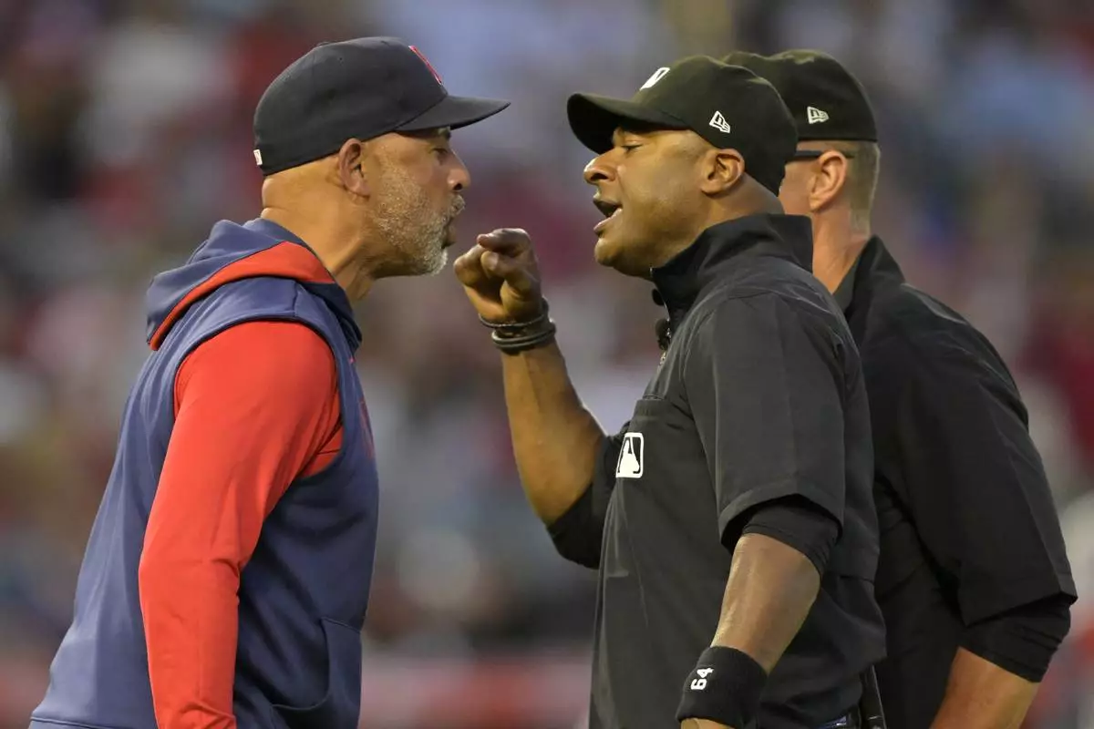 ANAHEIM, Calif. (AP) — Alex Cora is 0 for 2 in arguing obstruction calls with umpire Alan Porter after the Boston Red Sox manager was ejected Monday night in the fifth inning of a 9-5 loss to the Los Angeles Angels, the second straight game in which Cora was tossed.