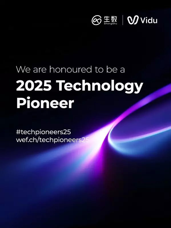 SINGAPORE, June 24, 2025 /PRNewswire/ -- ShengShu Technology, a pioneer in generative AI video and creator of the flagship product Vidu, has been selected by the World Economic Forum (WEF) as a member of the Technology Pioneers Community 2025. This selection recognizes ShengShu Technology as an innovative early-stage company introducing a world-changing technology that's improving and positively shaping the world.