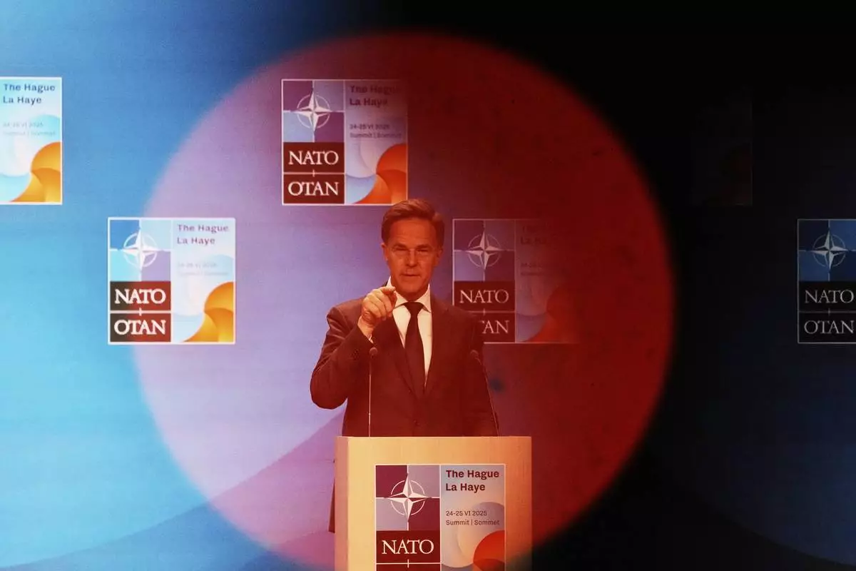 NATO Secretary General Mark Rutte speaks during a media conference in The Hague, Netherlands, Monday, June 23, 2025 ahead of the NATO summit. (AP Photo/Markus Schreiber)
