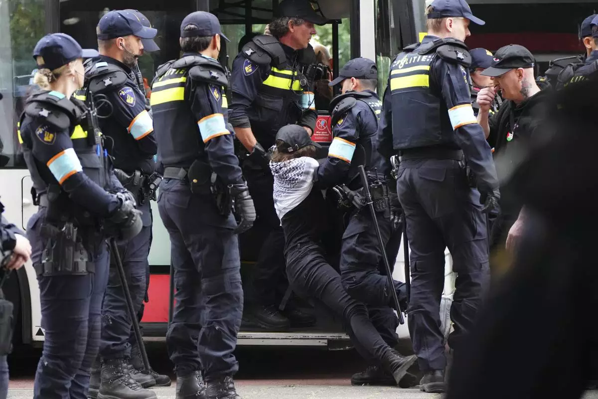 Police detain a protester during a rally against the NATO summit in The Hague, Netherlands, Wednesday, June 25, 2025. (AP Photo/Patrick Post)