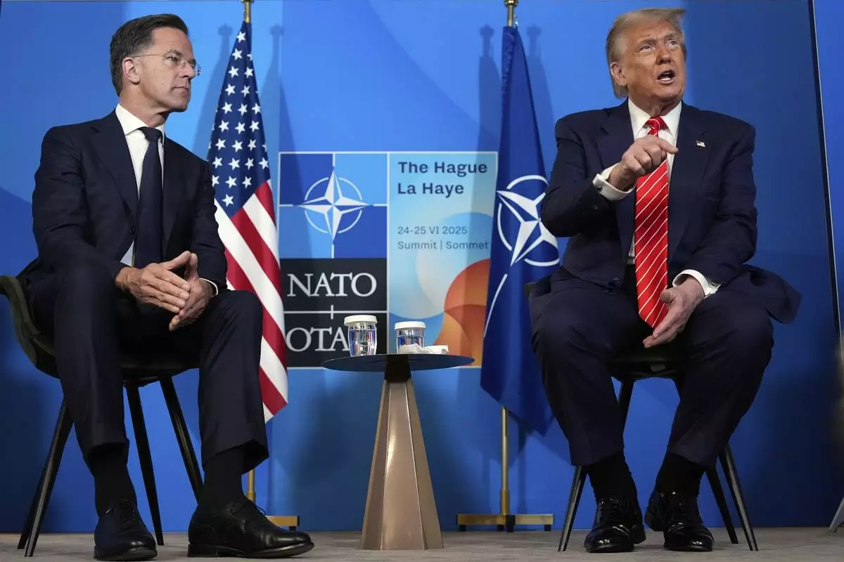 President Donald Trump meets NATO Secretary General Mark Rutte at a NATO summit in The Hague, Netherlands, Wednesday, June 25, 2025. (AP Photo/Alex Brandon)