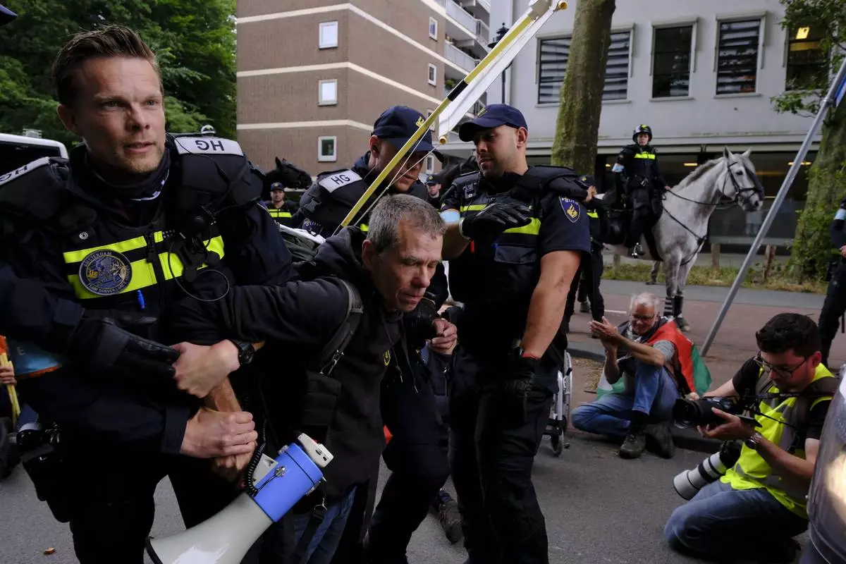 Police detain a protester during a rally against the NATO summit in The Hague, Netherlands, Wednesday, June 25, 2025. (AP Photo/Peter Dejong)
