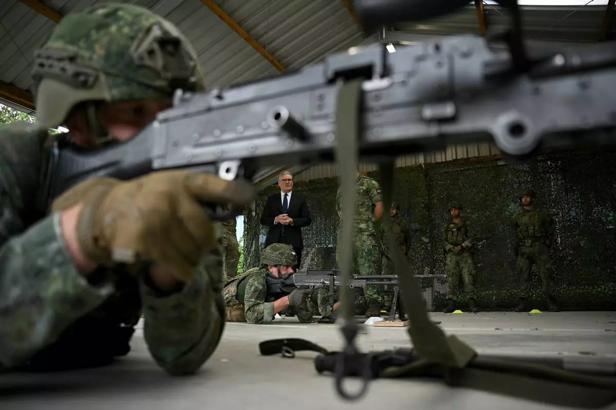 Britain's Prime Minister Keir Starmer, center, visits the Netherlands marines training base, as part of the UK-Netherlands Joint Amphibious Force in Rotterdam, Netherlands, Tuesday, June 24, 2025, on the sidelines of the NATO summit. (Ben Stansall/Pool via AP)