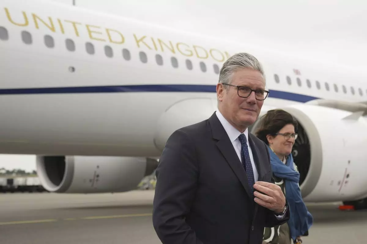 Britain's Prime Minister Keir Starmer arrives at Amsterdam Schiphol Airport ahead of the NATO summit, taking place in The Hague, Netherlands, Tuesday, June 24, 2025. (Kin Cheung, Pool)
