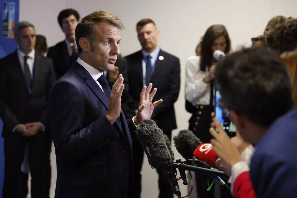 French President Emmanuel Macron speaks during a media conference at the NATO summit in The Hague, Netherlands, Wednesday, June 25, 2025. (AP Photo/Geert Vanden Wijngaert)